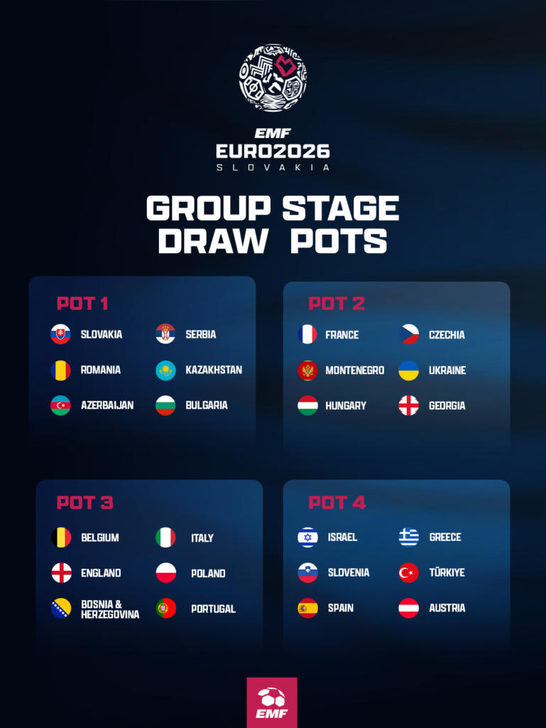 V úvodnej fáze EMF EURO 2026 sa na štadióne Ondreja Nepelu bude hrať v šiestich skupinách po štyroch účastníkoch systémom každý s každým. Do osemfinále postúpia prví dvaja z každej skupiny a ešte štyria najlepší z tretích miest.
